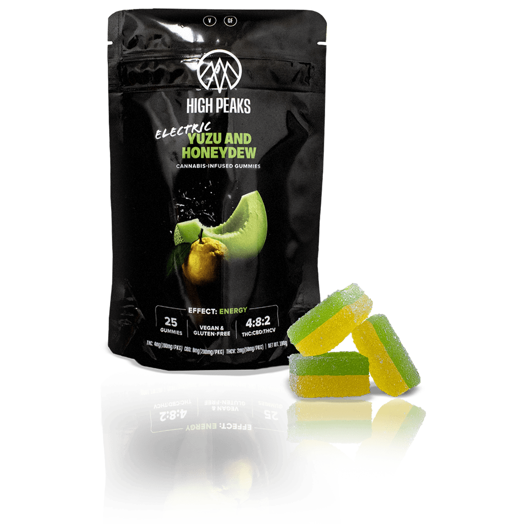 High peaks | Gummies | Electric Yuzu and Honey Dew | 4:8:2 THC:CBD:THCV | Focus | 25pc | 100mg THC