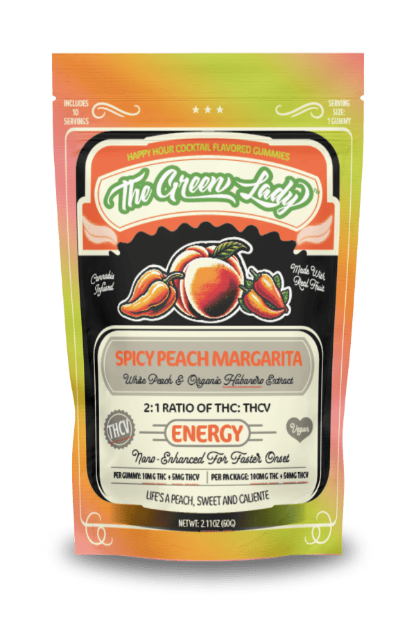 The Green Lady | Gummies | Spicy Peach Margarita | 2:1 THC:THCv | 10pk | 100mg THC