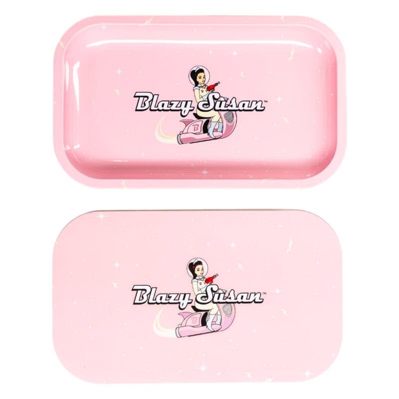 Blazy Susan | Rolling Tray + Magnetic Cover | Medium 10.5" x 6.25" | Pink Spacey Susan