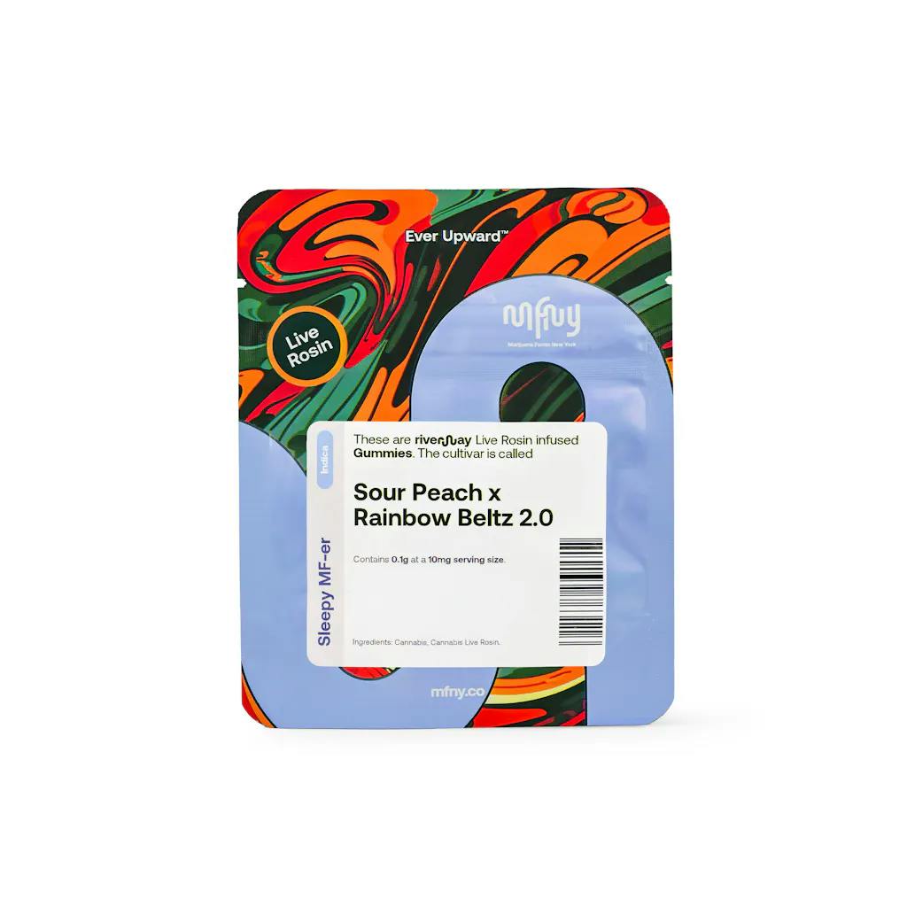 MFNY | Gummies | Sour Peach x Rainbow Beltz 2.0 | Indica | Live Rosin | 10pc | 100mg THC