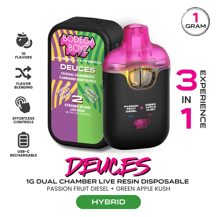 Bodega Boyz | AIO Vape | Passion Fruit Diesel x Green Apple Kush | Live Resin Duel-Chamber | Hybrid | 1g