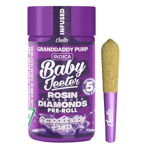 Jeeter | Baby Jeeter .5g Prerolls | Granddaddy Purp | Indica | Liquid Diamonds-Rosin-Kief | 5pk