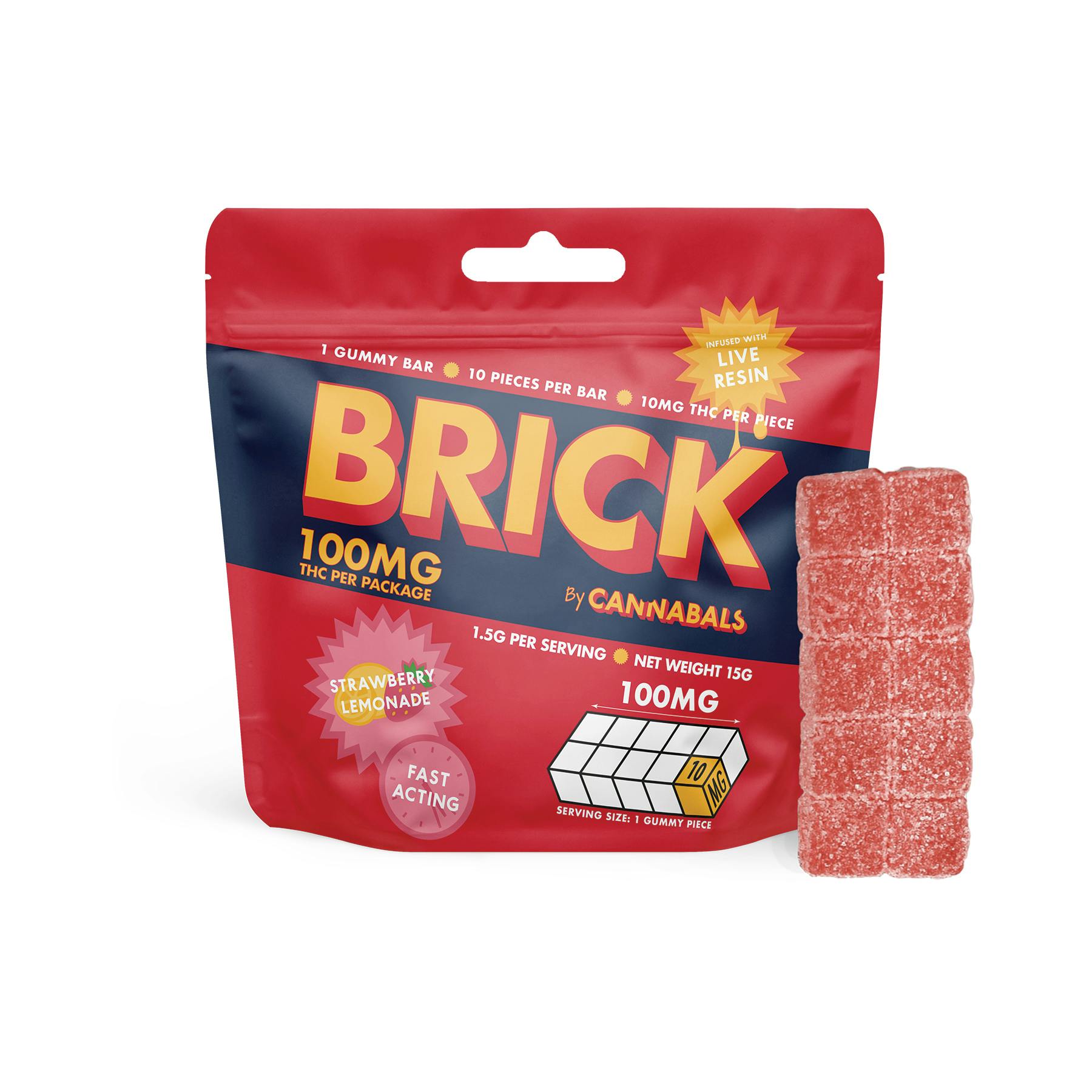Cannabals Brick | Gummies | Strawberry Lemonade | Live Resin | 10ct | 100mg THC