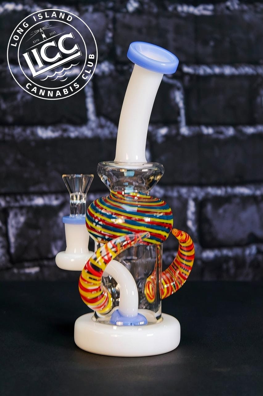 Glass | Rainbow Horn Recycler | Water Pipe | 8" | HJ-064