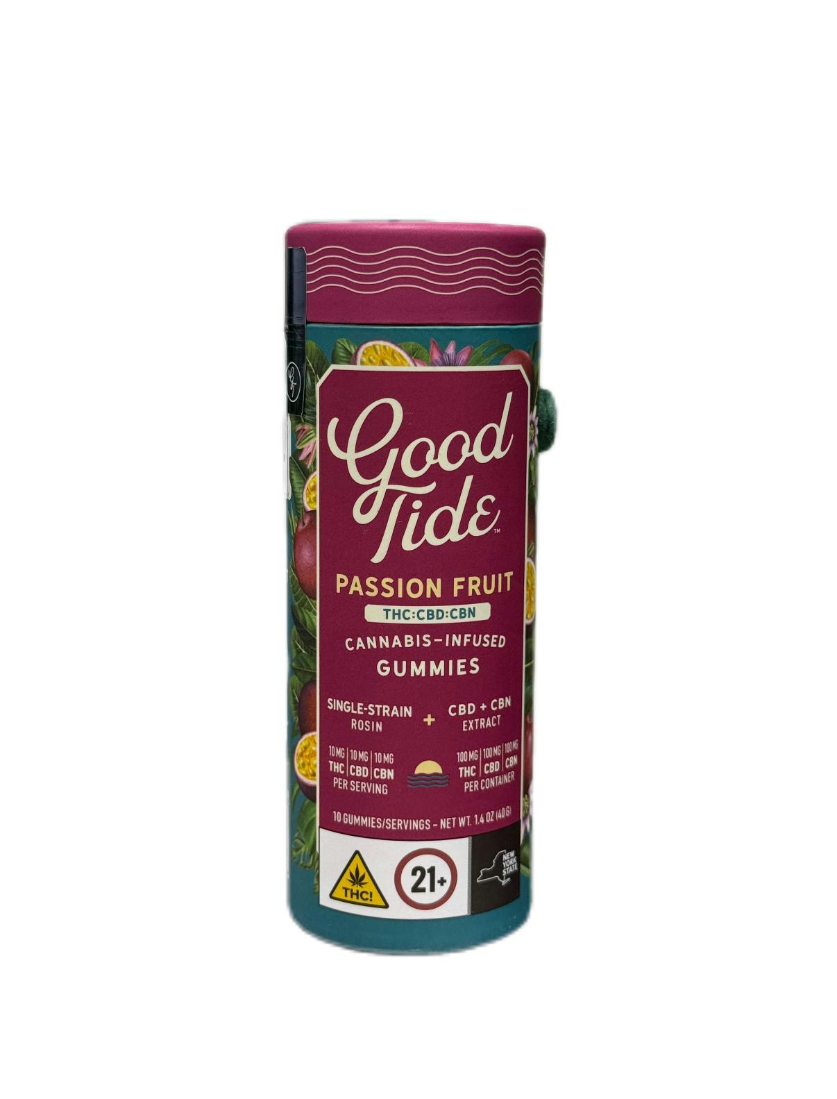 Good Tide | Gummies | Rosin Infused | Passion Fruit | Sleep | 10ct | 1:1:1 THC:CBD:CBN | 100mg THC