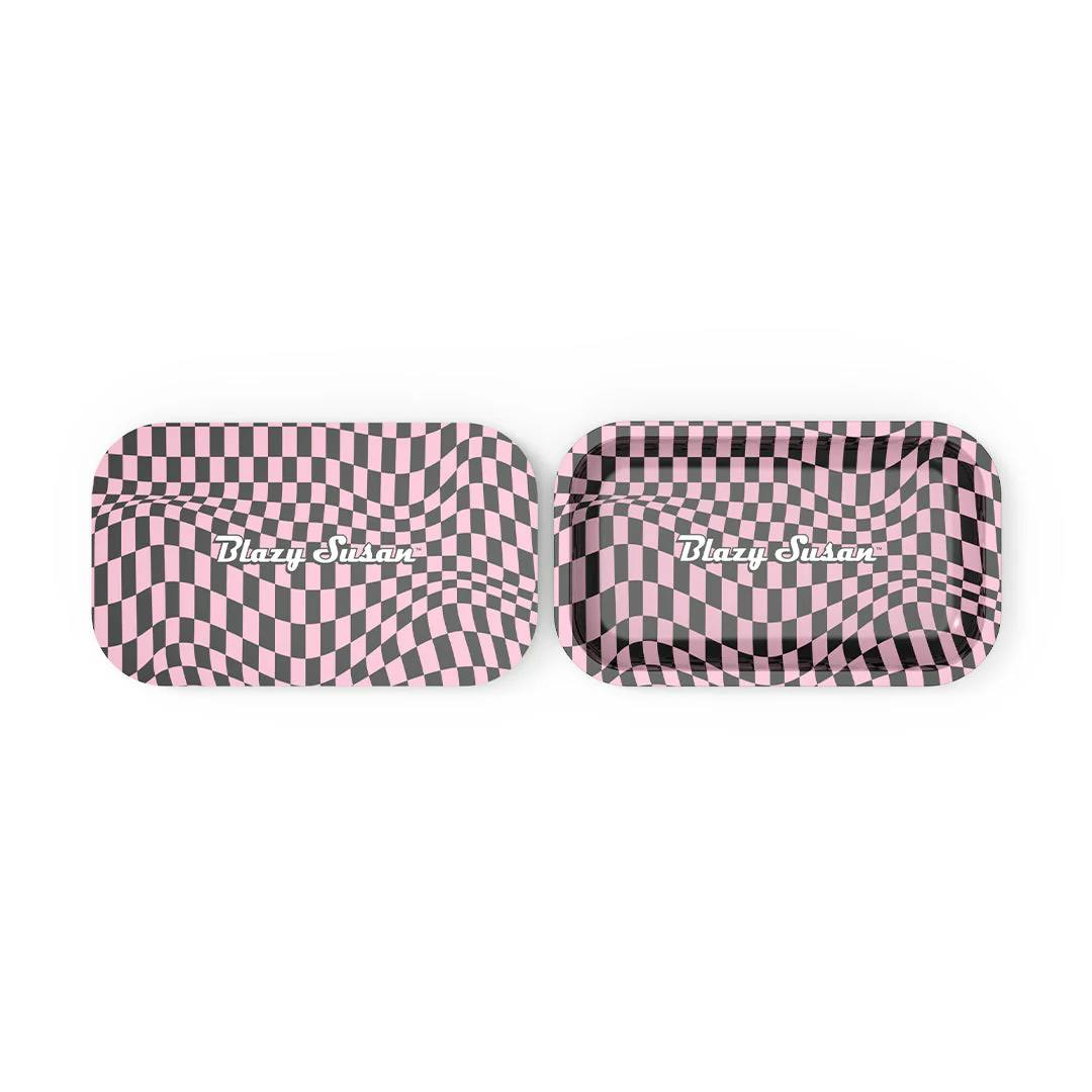 Blazy Susan | Rolling Tray + Magnetic Cover | Medium 10.5" x 6.25" | Trippy Checkers