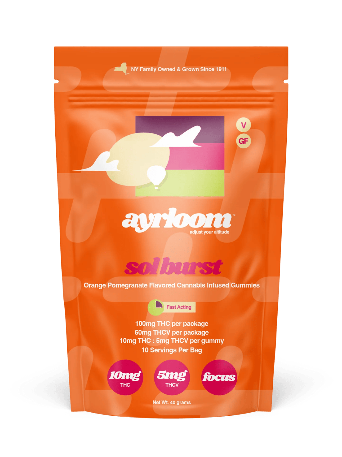 Ayrloom | Gummies | Sol Burst | Hybrid | Vegan | 10pc | 2:1 THC:THCV | 100mg THC