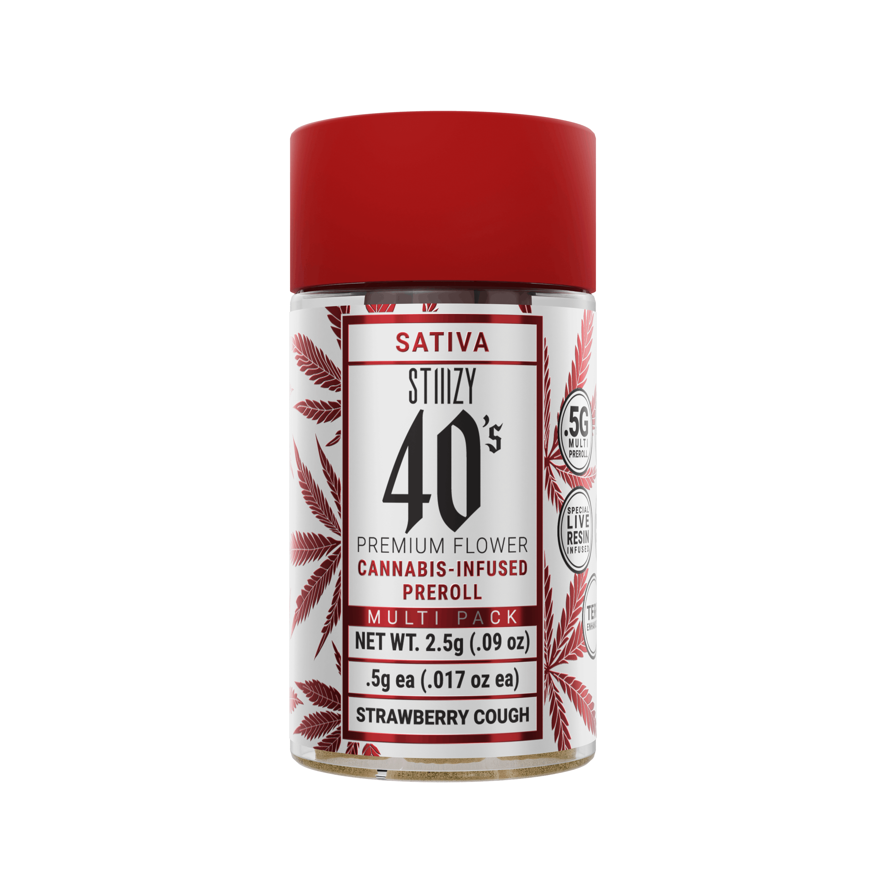 Stiiizy | .5g Prerolls | Strawberry Cough | Sativa | Live Resin Infused | 5pk